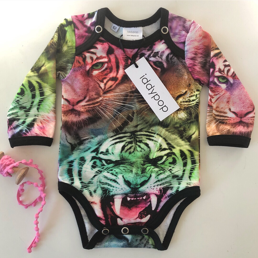 Kan finnas spår av textillim på plagget, försvinner vid första tvätten.